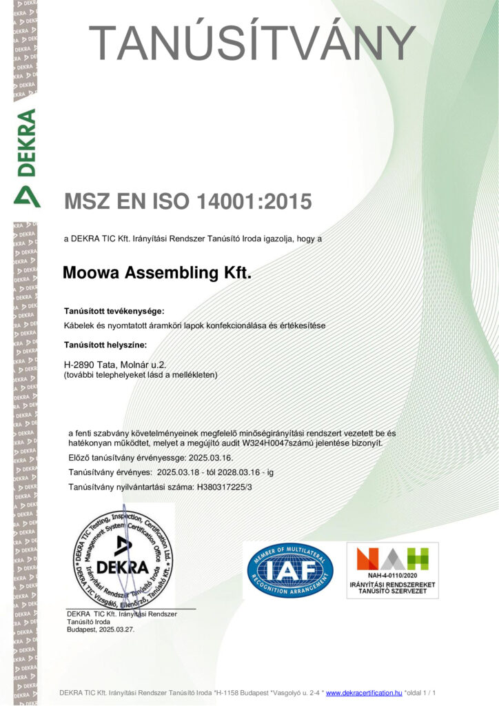 ISO 9001:2015 minőségirányítási és ISO 14001:2015 környezetközpontú irányítási szabványok előírásai által vagyunk tanúsítva.
